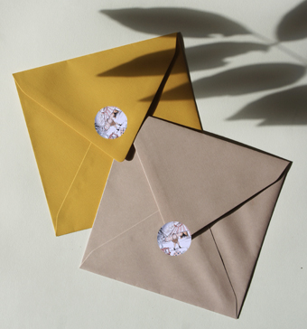 Onderaan elke kaart zie je een 'ontwerp-jouw-eigen' sluitzegel die je kunt customizen zoals jij dat wil.