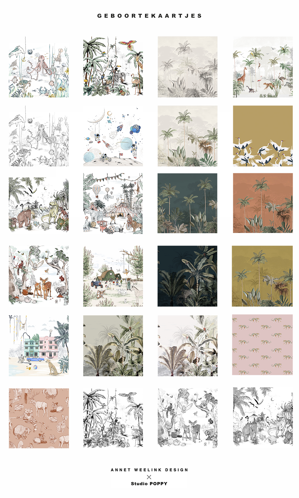 Tegenwoordig zijn trends in het interieur nauw verbonden met trends in geboortekaartjes. Er was meer en meer vraag naar geboortekaartjes die matchen met het babykamertje. Zodoende is de samenwerking tussen Annet Weelink Design en Studio POPPY ontstaan en kunnen we geboortekaartjes aanbieden met het unieke design van Annet!