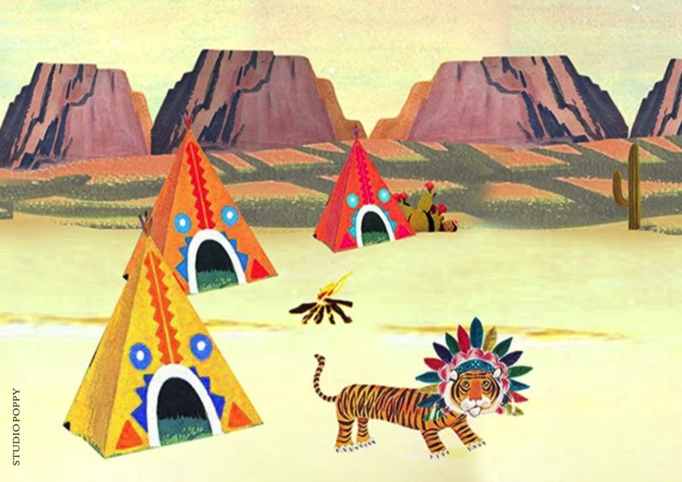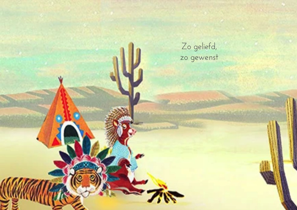 Geboortekaartje met dieren indianen in de woestijn. Een avontuurlijk geboortekaartje  met fantasierijke illustraties die het kaartje vrolijk maakt. Ze zitten rond het kampvuur en de wigwams staan al opgezet. De tijger, koe, ijsbeer en ezel bespreken de da Geboortekaartje met dieren indianen in de woestijn. Een avontuurlijk geboortekaartje  met fantasierijke illustraties die het kaartje vrolijk maakt. Ze zitten rond het kampvuur en de wigwams staan al opgezet. De tijger, koe, ijsbeer en ezel bespreken de da