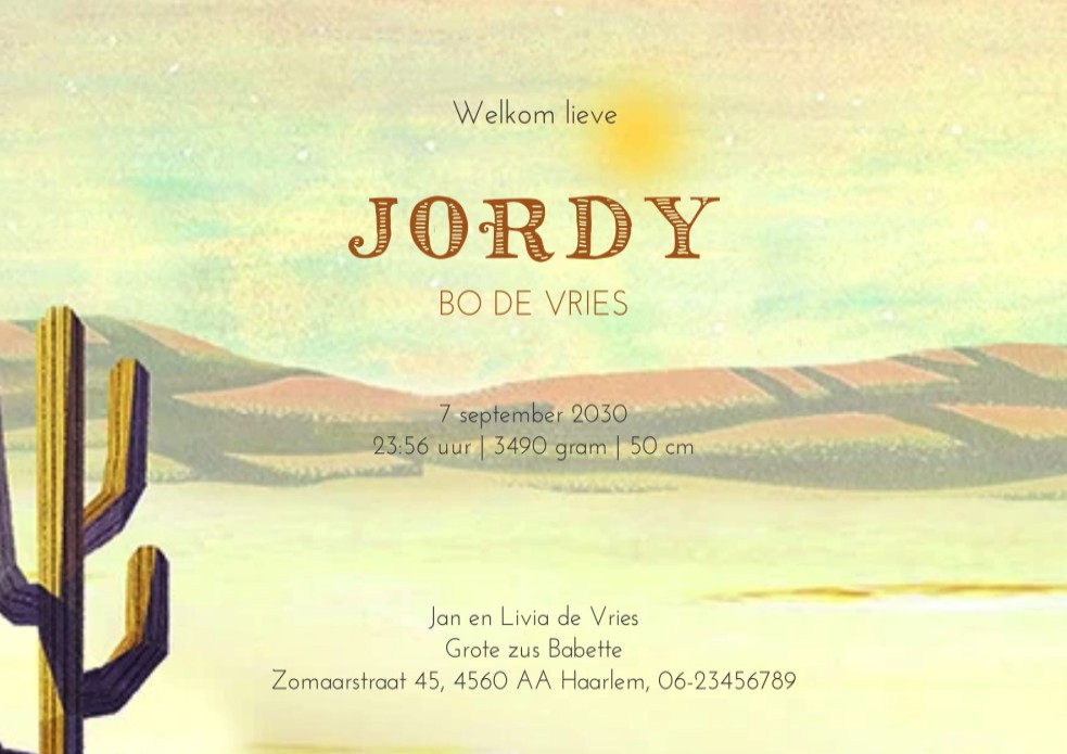 Geboortekaartje woestijn met dieren indianen retro