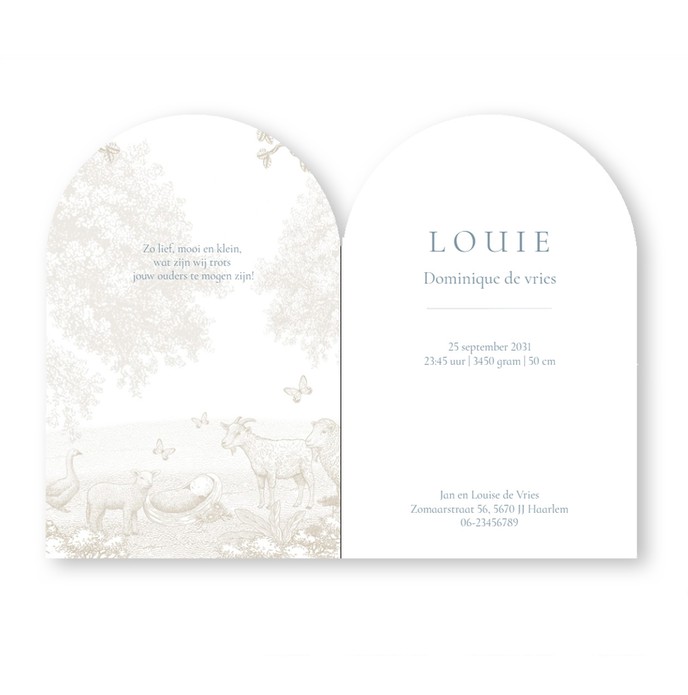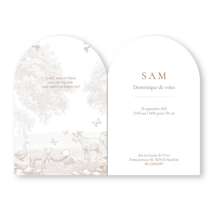 - Vervang de standaard teksten voor jouw persoonlijke teksten. Een leidraad voor de teksten kan deze checklist geboortekaartje zijn.