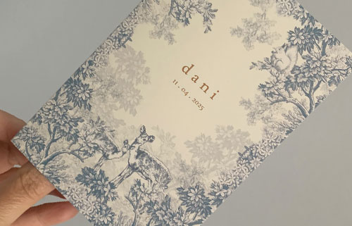 We hebben prachtige papiersoorten beschikbaar. Voor elke kaart wat wils. Kijk eens naar deze pagina met papiersoorten voor de eigenschappen en geschiktheid voor bijvoorbeeld foliedruk of labelkaarten.