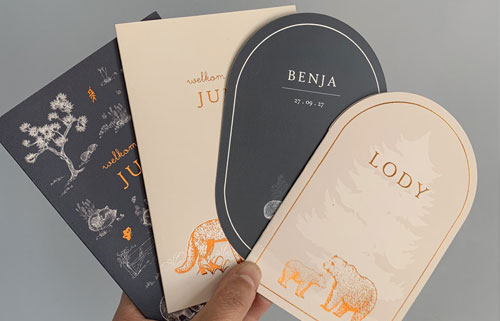 We hebben prachtige papiersoorten beschikbaar. Voor elke kaart wat wils. Kijk eens naar deze pagina met papiersoorten voor de eigenschappen en geschiktheid voor bijvoorbeeld foliedruk of labelkaarten.